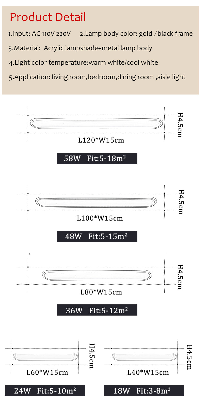 120cm simple chandelier ceiling-led light provides bright uniformed light without flickering and shade always creates a safe and cozy environment. The color can be changed from warm white to cool white, or changeable. The darkness can be adjusted, from dark to bright. 18w to 58w at full brightness, the color temperature can be adjusted arbitrarily between 3000k and 6000k. It is suitable for daily lighting in indoor environments, homes, offices, and, living room decor. Which provides all-around illumination for you and cuts down the electric bill up to 80%.