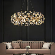 Our crystal glass pendant lamp, made of many crystal hardware, is a traditional modern pendant design that complements a wide range of design aesthetics. The G9 base of the lamp is made of iron material, and the floor is inlaid with square crystals, which makes the lamp more stable and beautiful. Our gold G9 droplight-led installation type is a semi-flush mount. The same cable length of the light fixtures can be changed to match your selections and ceiling height requirements by unscrewing the tightening pendant lamp. It is a great option for various hanging locations and works with various ceiling styles, including vaulted, sloped, flat, and decorative glass ceilings.
