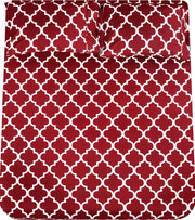 Cymak Bedding Printed Queen Sheet Set - 1 Fitted Sheet, 1 Flat Sheet and 2 Pillowcases - Soft Brushed Microfiber Fabric - Shrinkage and Fade Resistant (Queen, Burgundy Quatrefoil with White Pattern)